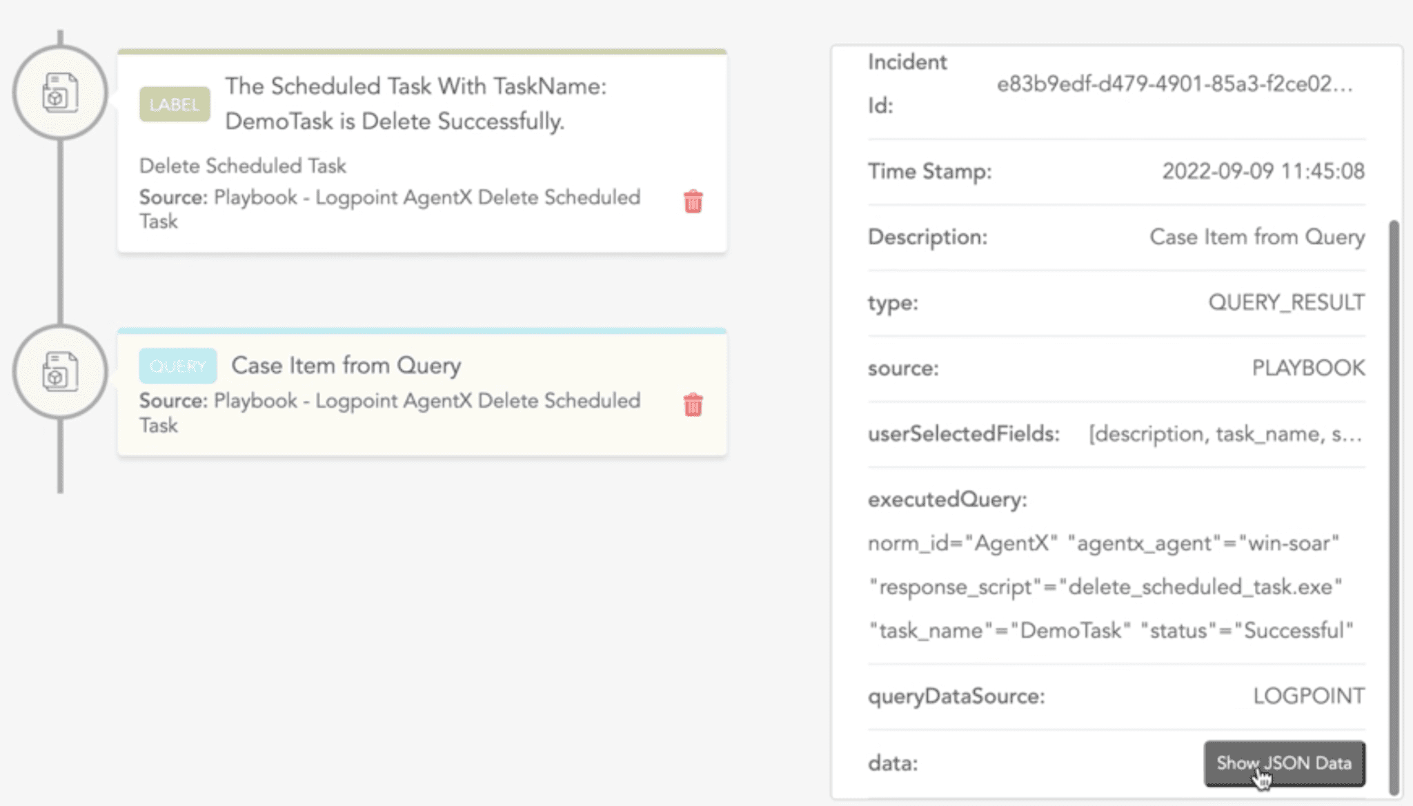 The guardsix AgentX delete scheduled task response playbook reduces the burden of manually deleting a suspicious scheduled task. This playbook requires the analyst to provide the hostname of the machine where the scheduled task was created, the manager IP address, and the scheduled task name.