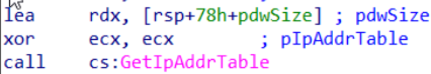 We have also found a call to GetNativeSystemInfo API which contains various system information like architecture, number of processors, and page size. Using the GetNativeSystemInfo with dwNumberOfProcessor function, the malware is trying to retrieve the number of the processor’s cores.