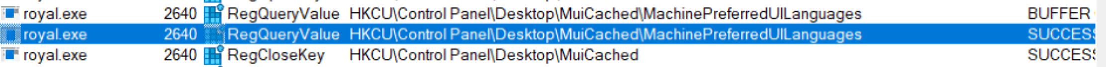 Also Royal has been found querying the registry key shown in below image to check system language settings. This can be done to verify language settings and display output accordingly.