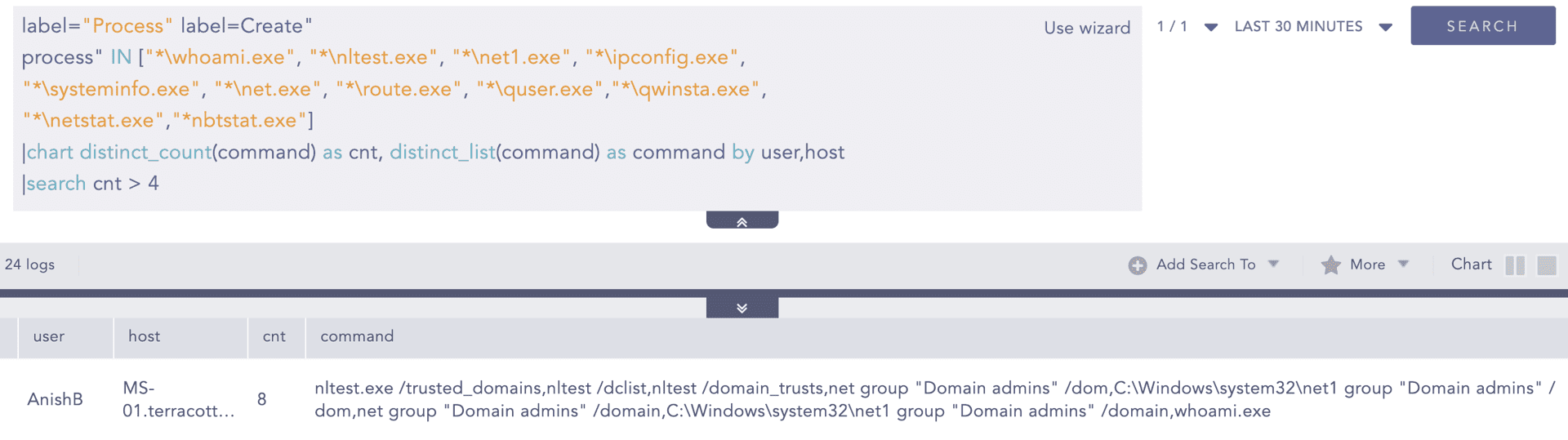 Adversaries commonly utilize various built-in Windows binaries in close succession for reconnaissance activities. These behaviors can be effectively identified using the Reconnaissance Using Windows Binaries alert.