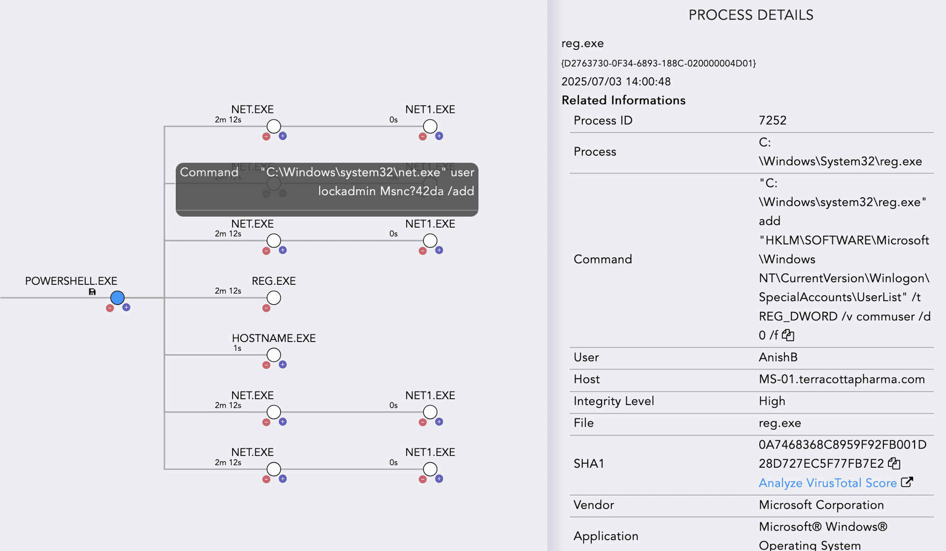 To remain undetected, the Akira gang modified registry values to hide user accounts from the standard login screen. This is done by adding the account under the SpecialAccounts\UserList registry key and setting its value to 0.
