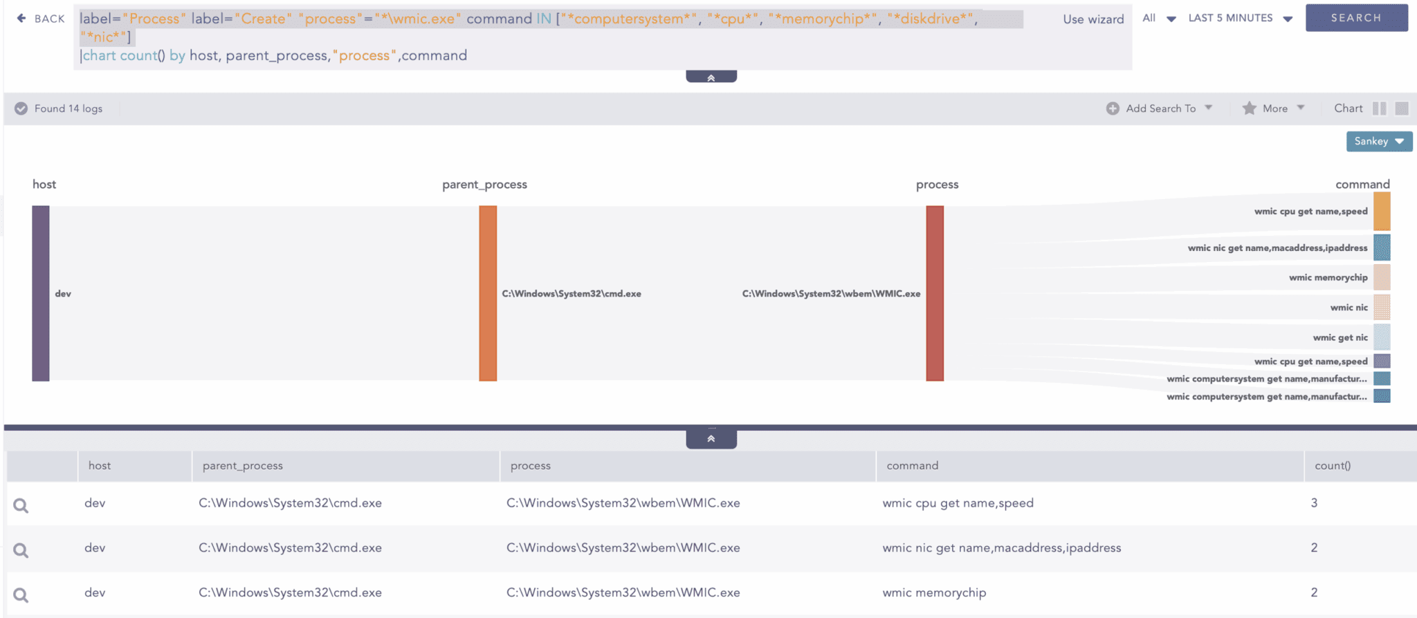 Furthermore, LameHug has used WMIC to perform hardware reconnaissance, extracting detailed information about the CPU, memory modules, disk drives, and network interfaces of the compromised system. We can use below query to hunt for such instances.