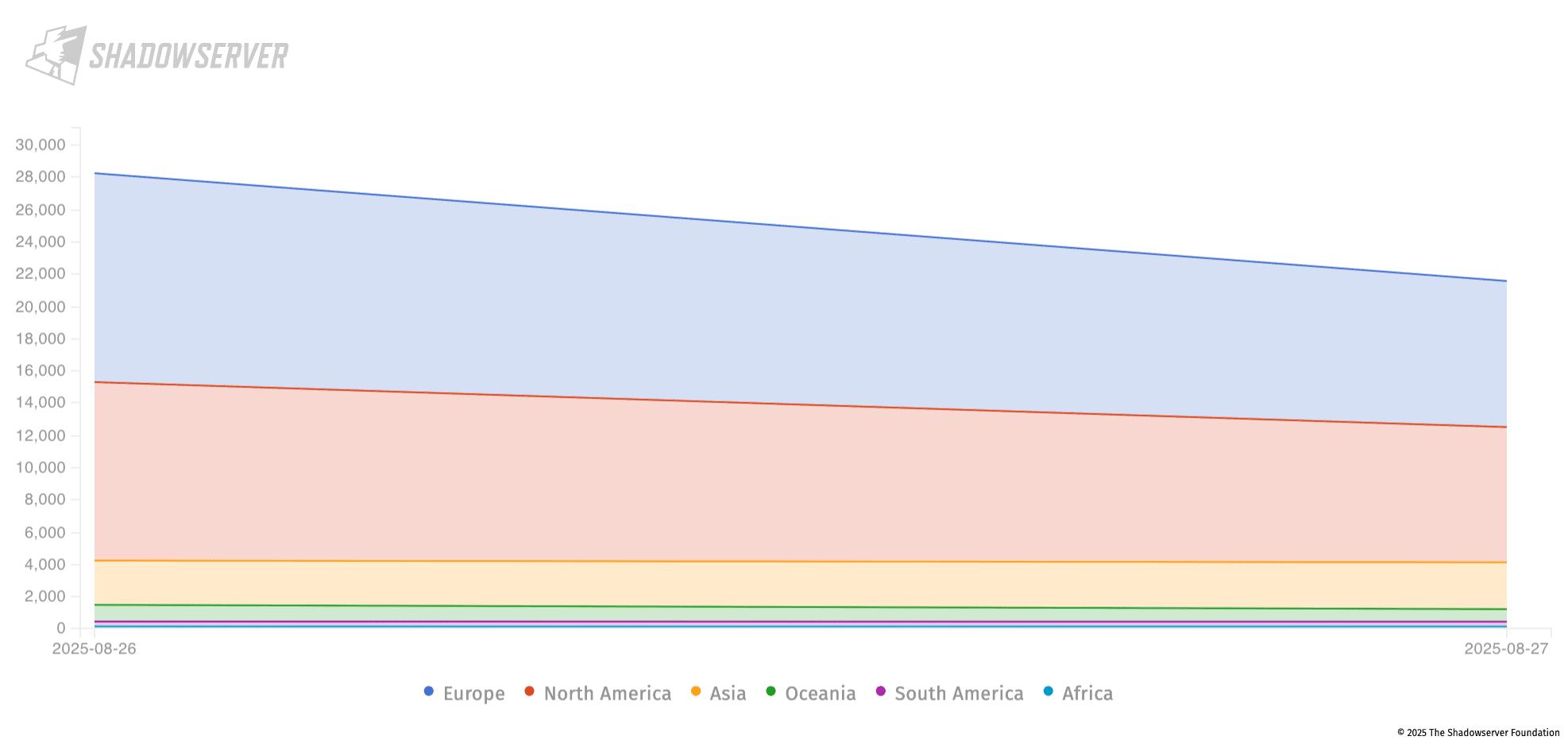 On August 28, using data from The Shadowserver Foundation’s internet scanning platform, we observed more than 28,000 Citrix NetScaler instances exposed online and vulnerable to CVE-2025-7775.