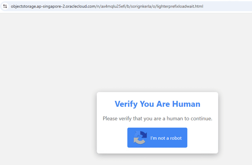 On browsing the sites, the page presented a Fake CAPTCHA screen.
