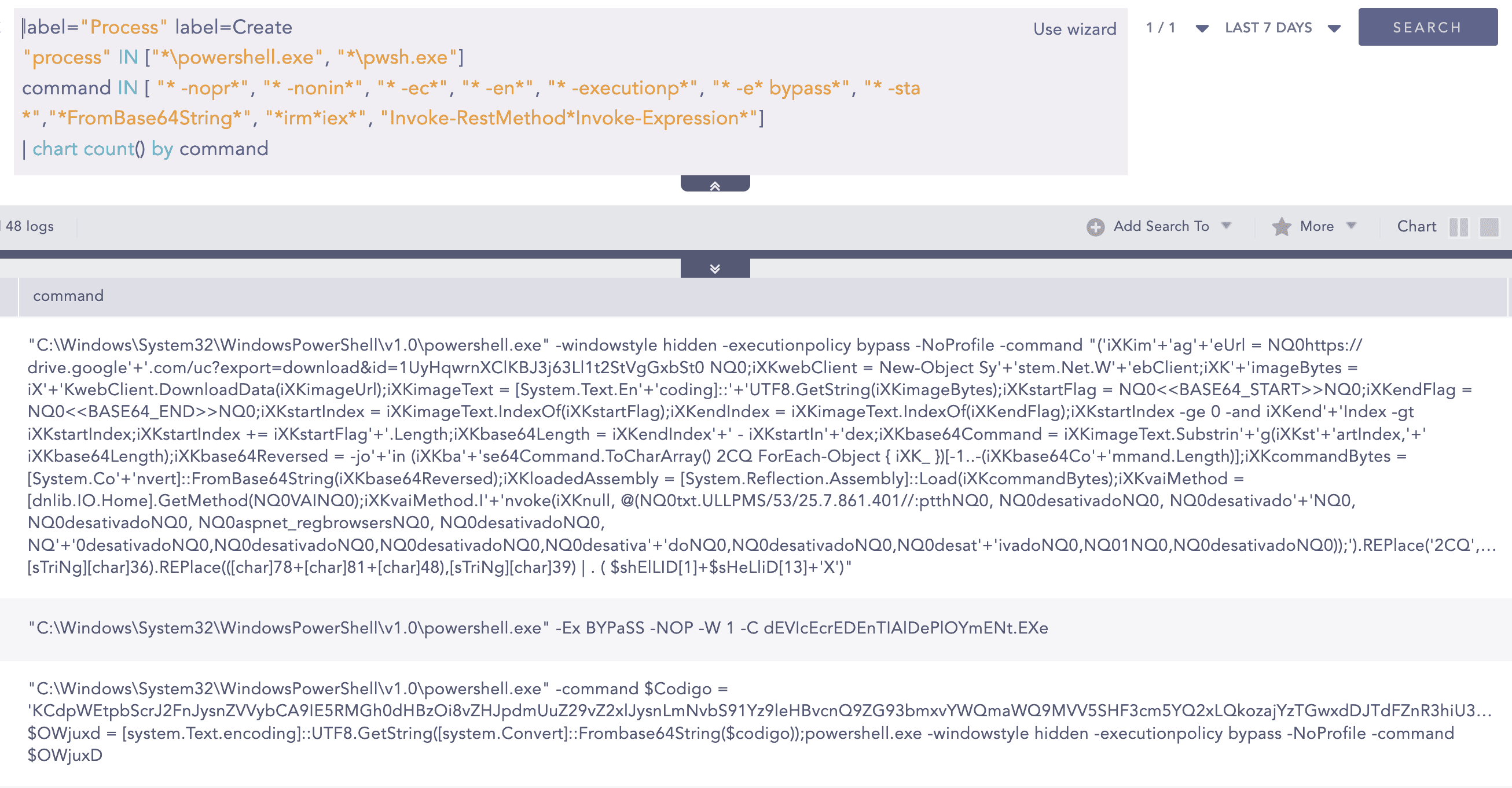 Given that many of the attack steps utilized PowerShell and its cmdlets, this alert detects the use of suspicious PowerShell commandlets commonly linked to malicious activities, such as executing Base64-encoded payloads or downloading remote files through PowerShell cmdlets.