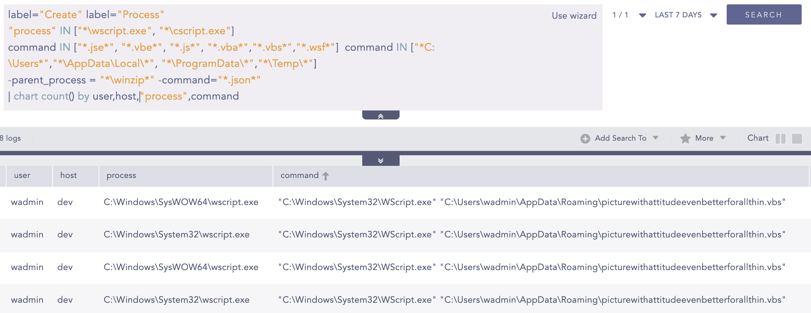 The VBS payload was executed using wscript.exe, making this alert effective for detecting the execution of scripting files such vbs files via wscript.exe or cscript.exe.