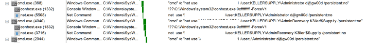 After the enumeration of the hosts, BlackCat tried to connect to discovered systems in the network and shares using the “net.exe” binary. It also tried to authenticate to the systems and shares using collected and compromised credentials.