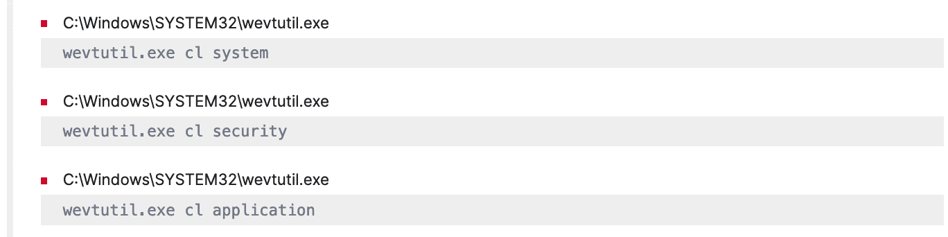 To leave no traces of its activities, Hive also clears all the system, security, and application logs mostly using the “wevtutil.exe“ system binary which can be detected by “Suspicious Eventlog Clear or Configuration Using Wevtutil Detected“