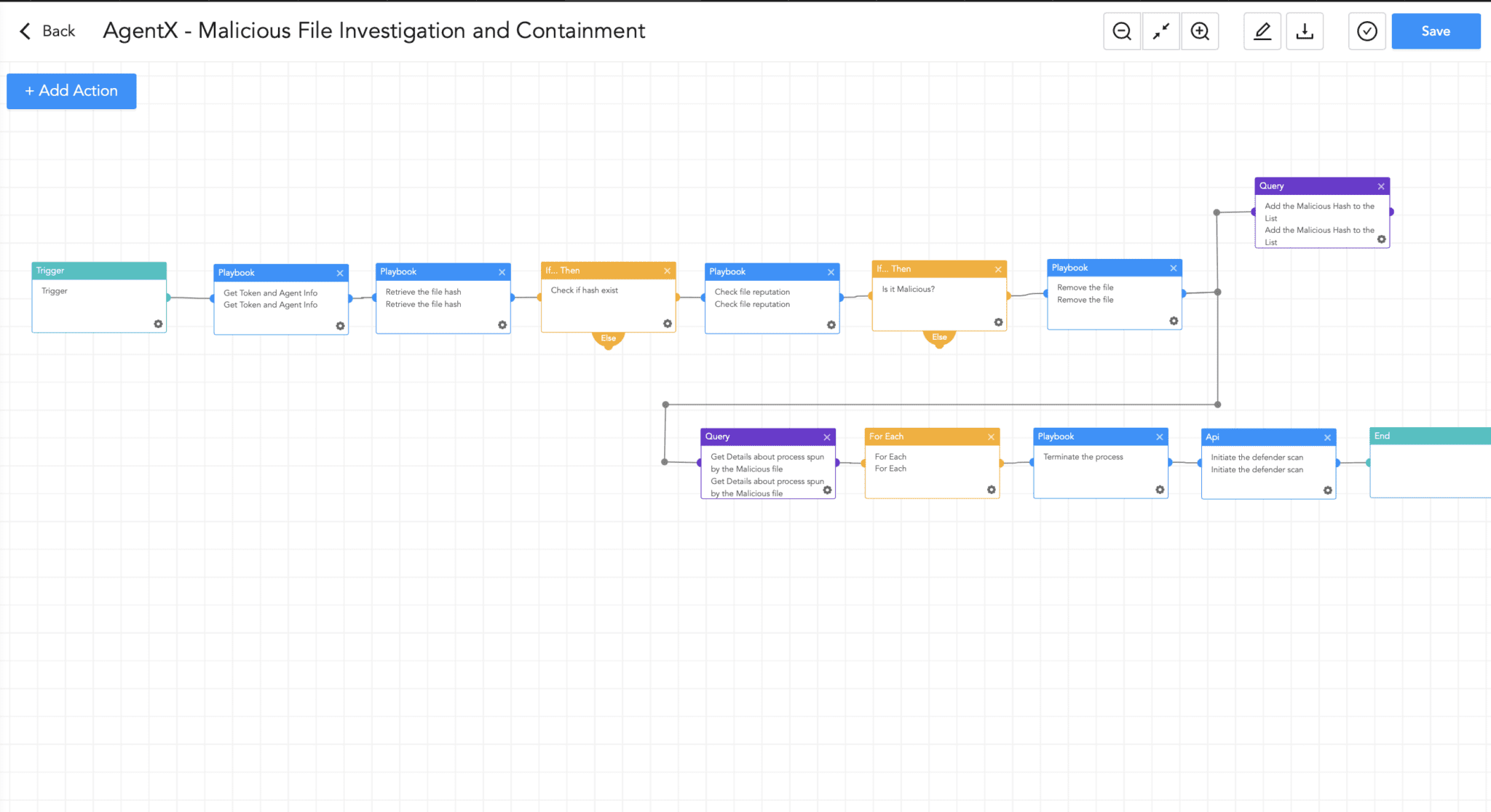 By utilizing AgentX - Malicious File Investigation and Containment playbook we can query files in threat intelligence sites to check the legitimacy of the file and provide an automatic response.