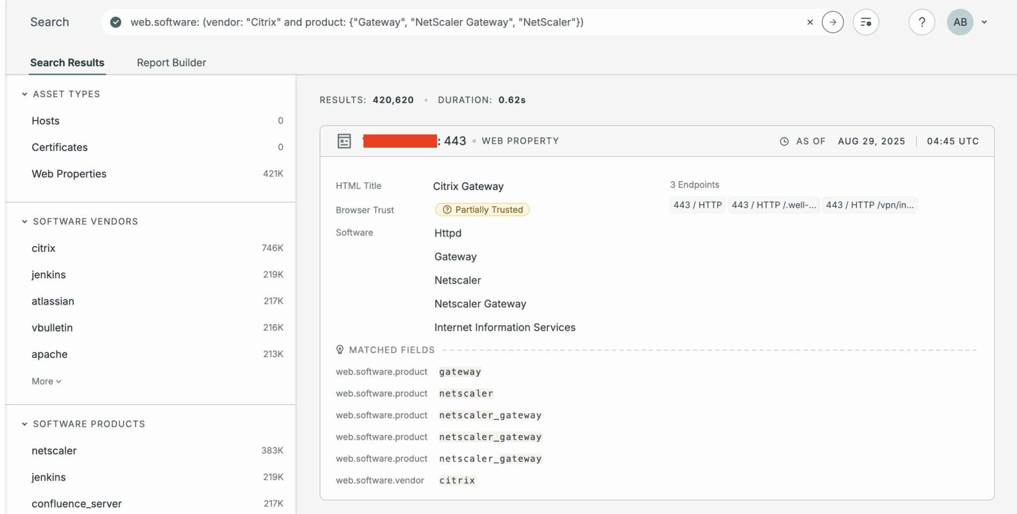 Thousands of Citrix appliances remain exposed to the internet, and exploitation attempts are rapidly increasing. As illustrated in the Censys scan results below, a significant number of vulnerable instances are still publicly accessible.