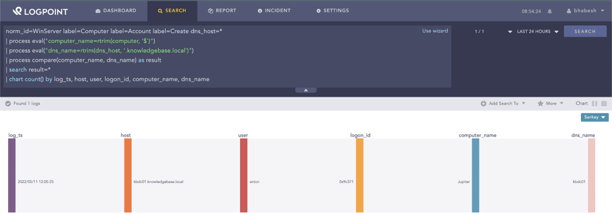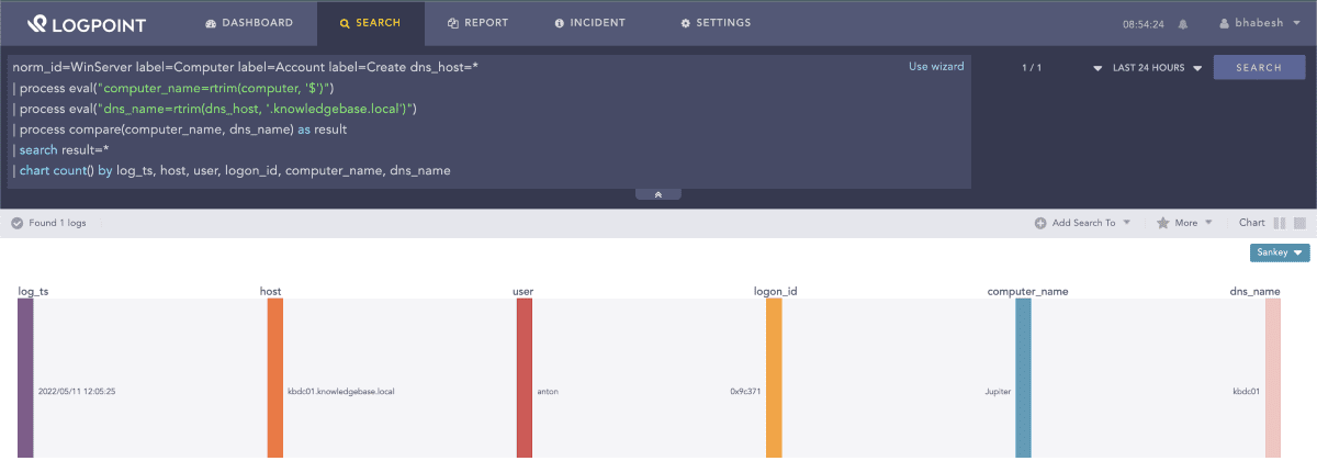 | process eval("dns_name=rtrim(dns_host, '.knowledgebase.local')") 4