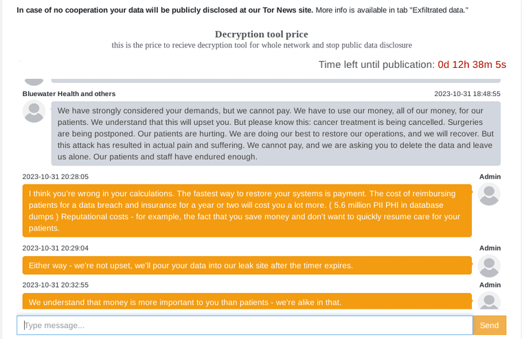 Fig: A chat between a victim and the ransomware group (source)
