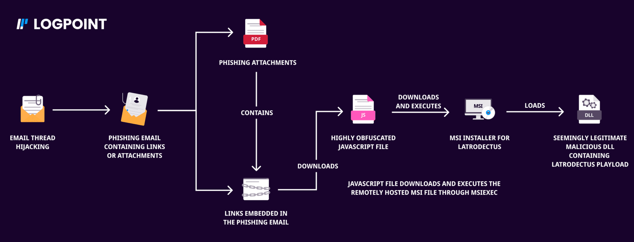 Latrodectus is sophisticated loader malware primarily distributed as a part of phishing campaigns. Here is a high-level overview of its operation