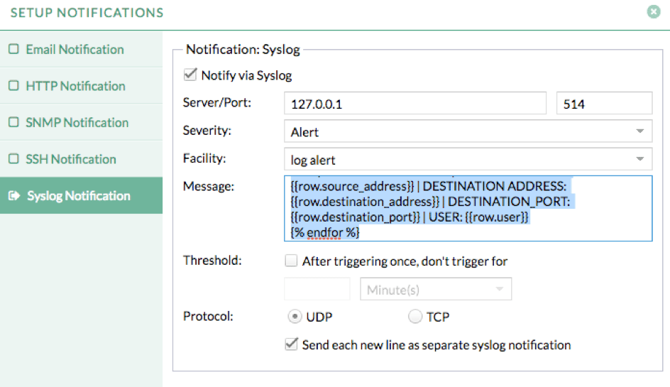 Setup Syslog alert notification