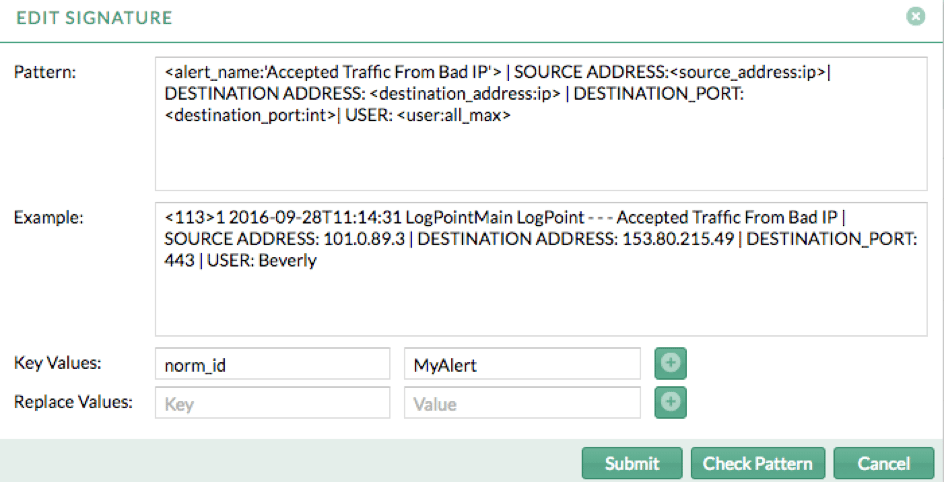 3. Create a normalization policy: MyAlert