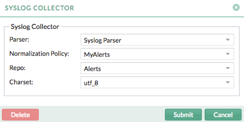 5. Apply the normalization policy to localhost device / Syslog Collector and select ‘Alerts’ as Repo.