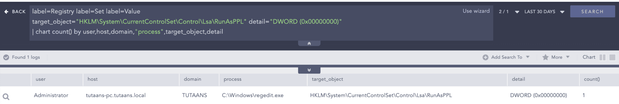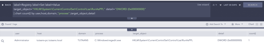 target_object="HKLM\System\CurrentControlSet\Control\Lsa\RunAsPPL" detail="DWORD (0x00000000)"