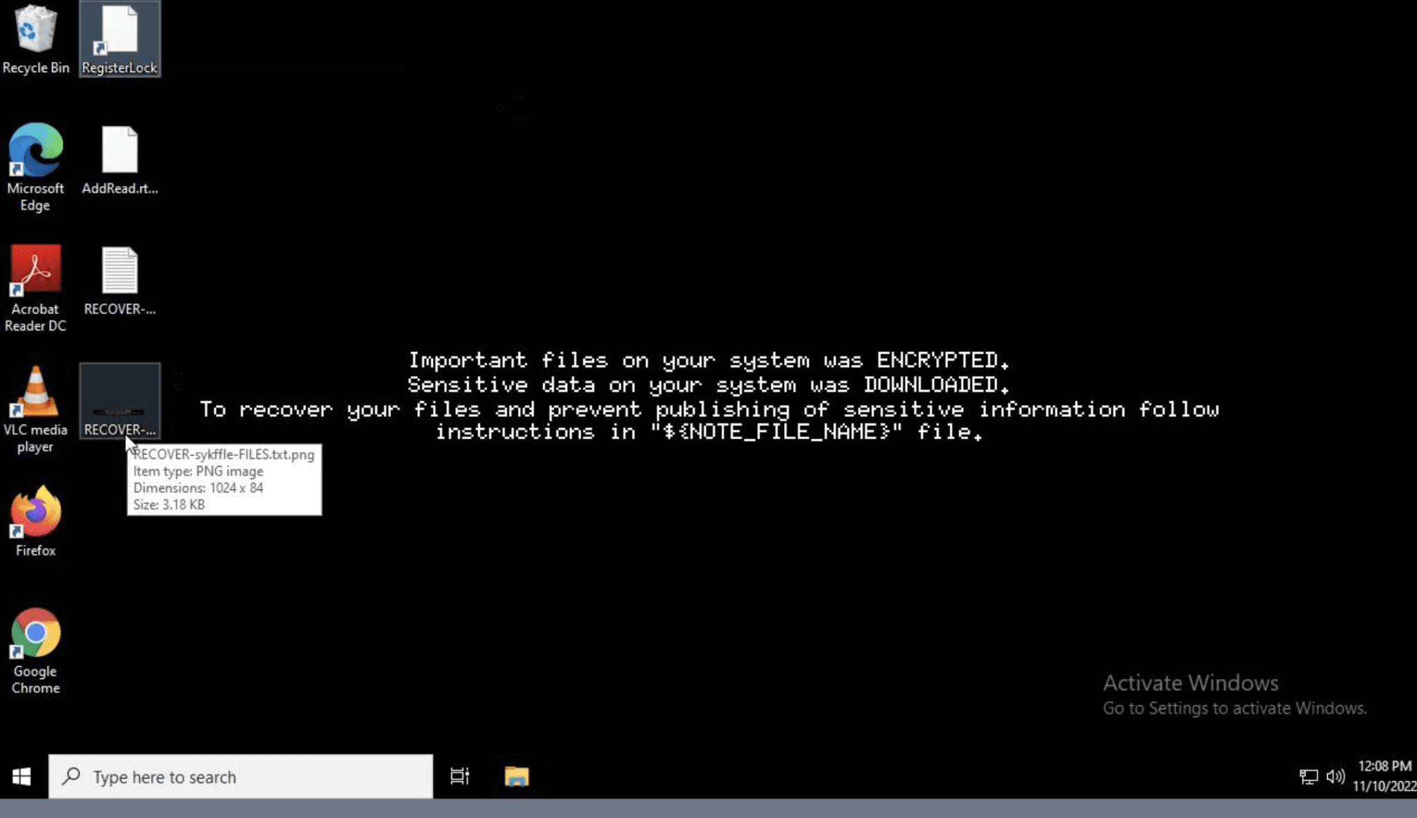 Lastly, the files were encrypted using the AES encryption algorithm (although the process can be overridden to use ChaCha20). An image along with a recovery file “RECOVER-sykffle-FILES.txt” was dropped on the desktop and the image was later used as wallpaper after completion of encryption.