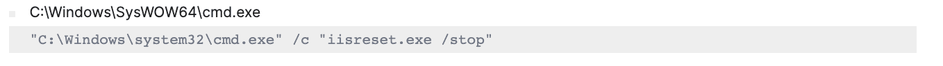 label="Process" label="Create" "process"="*\iisreset.exe" command="*/stop*"
