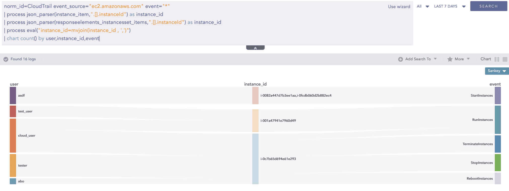 As JSONExpand created the 3 instances from one log, now aggregation commands like chart and time chart can be applied for sub-events of an original log event.