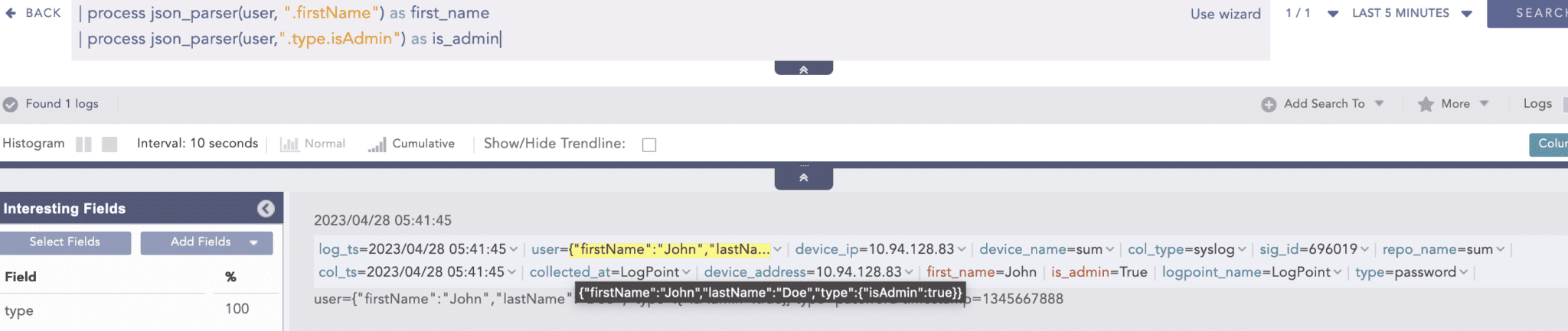 Easier to handle complex JSON log events and supports JSON data types, enhancing the capabilities of Logpoint search queries.
