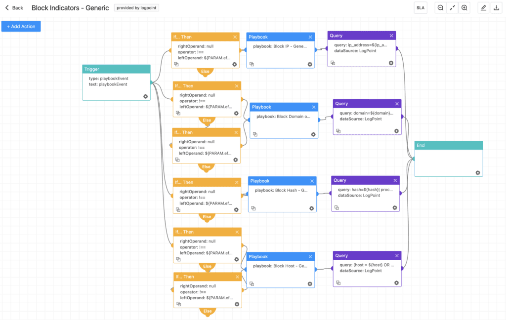 The Block Indicators - Generic playbook can be utilized to block malicious IP addresses, domains, files, and hosts. Block IP and other sub-playbooks work on a fixed number of products.