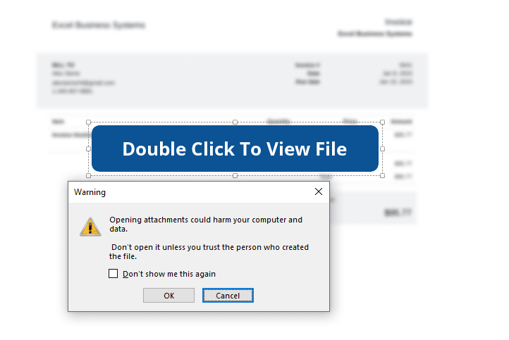 We can clearly see from the above images, the victim is deceived into double-clicking an overlay image to view the content that they thought be. Assuming the victim clicks to view and on clicking, a warning will appear. If the user interacts by clicking “ok”, the OneNote file will run an attached HTA, VBS, or similar file using the built-in Windows utility hidden behind the picture.