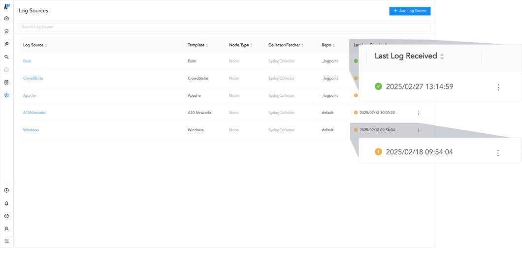 Never miss critical alerts due to log collection failures. Our new Log Source Activity Monitoring feature provides a clear overview with a visual color-coding system to instantly identify inactive log sources, as well as users can set up real-time notifications and email alerts. Define your own threshold for inactivity and receive alerts across multiple channels, ensuring continuous security visibility and preventing interruptions in your alerting, especially vital for large enterprises.