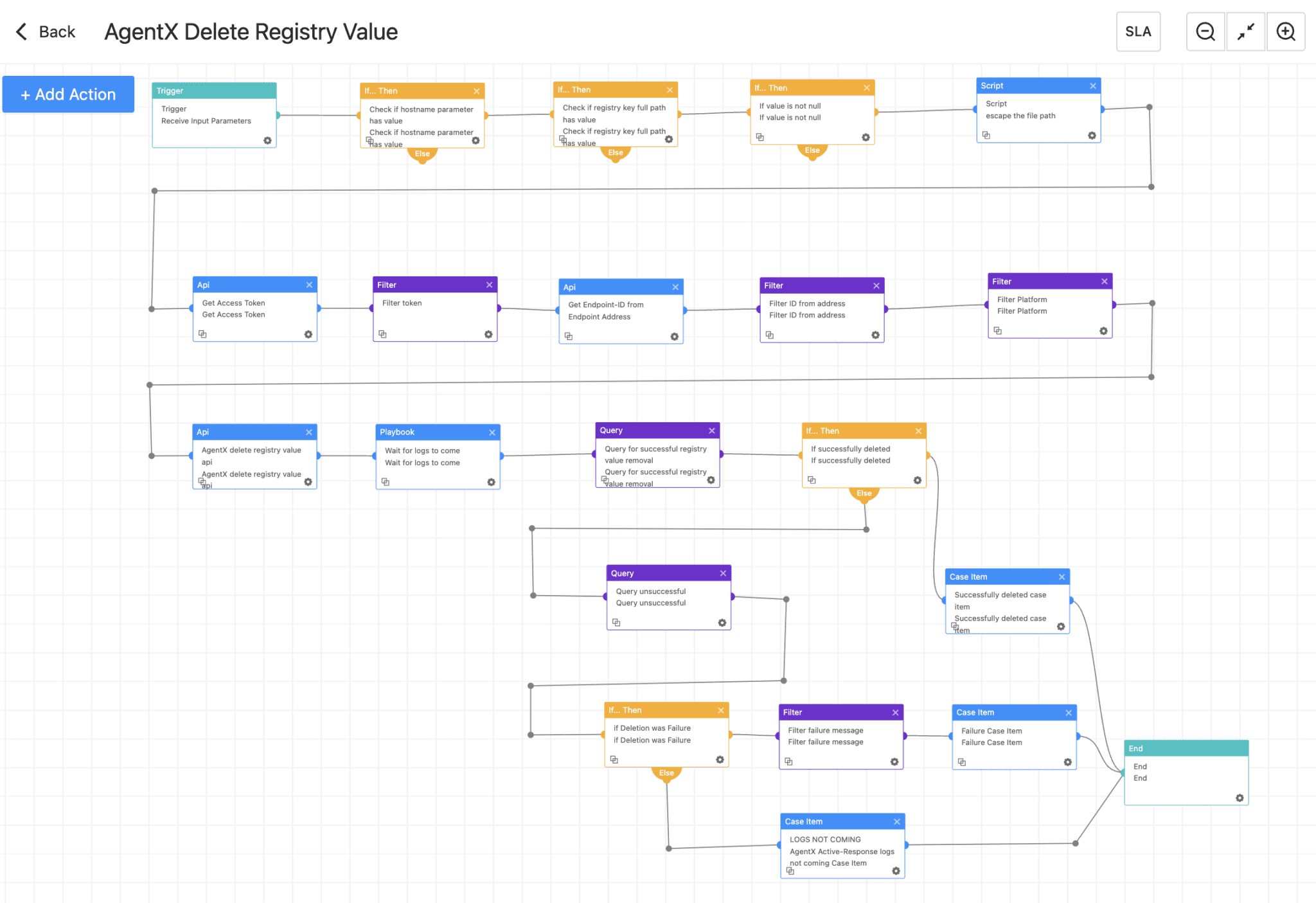 To counter detected persistence attempts triggered through the alerts mentioned in the previous detection section, the following Logpoint SOAR playbooks can be leveraged to take appropriate actions against registry values, processes, scheduled tasks, and start-up services and eliminate them.